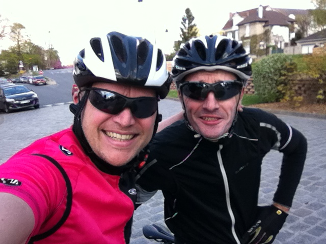 Samedi 18 Janvier: 06:45 am Teddy et Arnaud partent pour une petite boucle très matinale pour cause d'emploi du temps chargé.Eclairage et gilets de sécurité obligatoires. Arnaud lui, part avec des lunettes de soleil sur le nez...cherchez l'erreur.C'est l'euphorie et Teddy, complétement dans la lune, coupe la route à Arnaud au premier stop.C'est la chute pour Arnaud, à très faible allure, mais grosse inquiètude pour le vélo. Arnaud pendant 47 sec est furax Résultat: Arnaud 1, Lunettes 0 On reprend ensuite la route et nous gardons nos distances pour faire 53 km à 25km/h de moyenne.La moitié du trajet dans la nuit noire et l'autre accompagnant le levé du jour.
