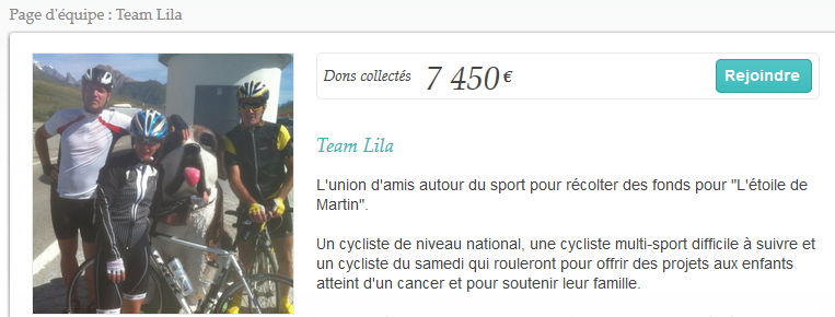 7450€, c'est la somme qui a été récoltée par la team Lila au profit de l'association l'Etoile de Martin.