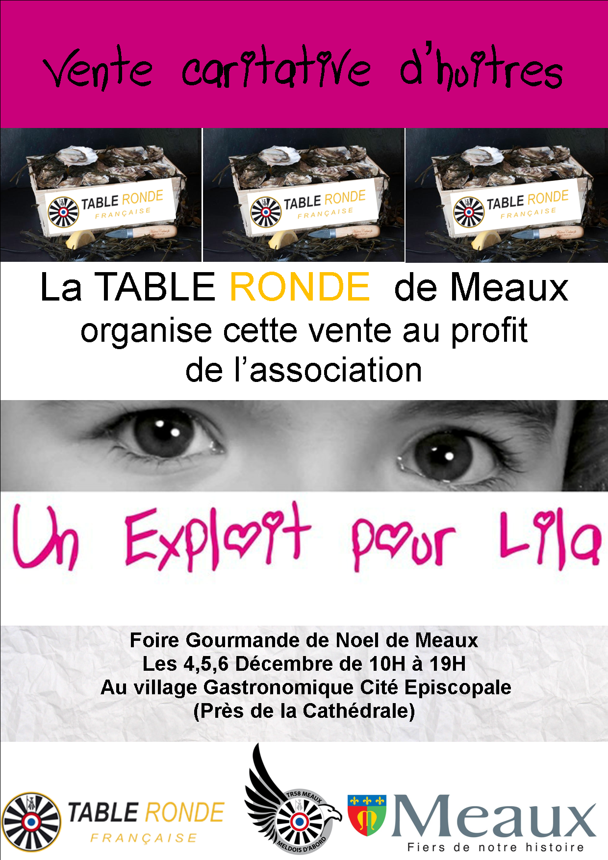 L'association la TABLE RONDE de MEAUX organise une vente caritative d'huitres lors de la Foire Gourmande de Meaux au profit de notre association. Nous remercions chaleureusement David Morin et tous les bénévoles de l'association.
