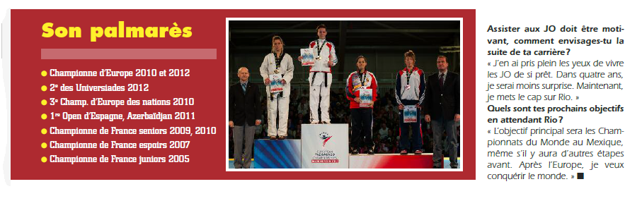 Notre marraine Floriane Liborio va s'envoler dans quelques jours pour le Mexique pour participer à un Tournoi International de Taekwondo, les 5 et 6 décembre : Objectif marquer un maximum de point pour se qualifier pour les Jeux Olympiques de Rio.