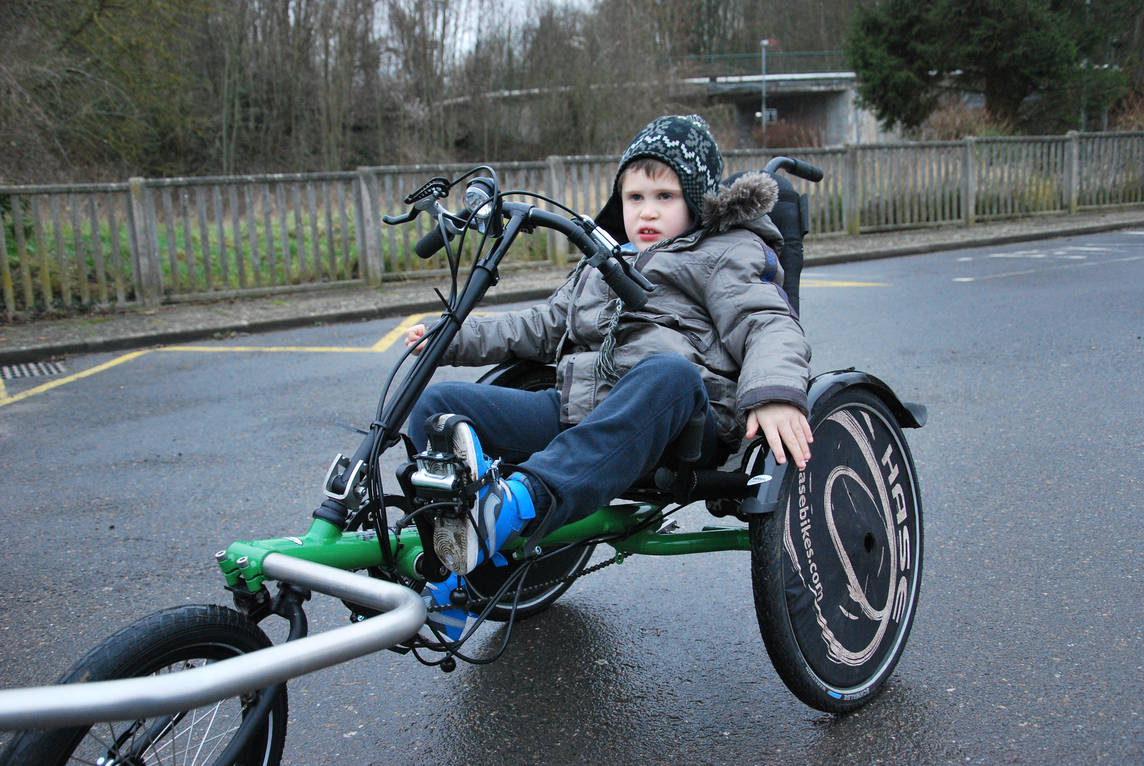 Paul a ensuite pris place sur le Pino, un tandem mixte ou il était allongé devant et piloté par un cycliste en position droite à l'arrière.