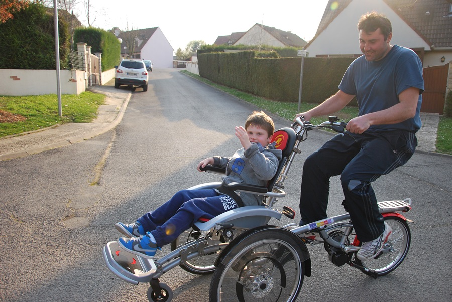 Vendredi 28 mars, Paul a essayé le tricycle-fauteuil O'Pair de chez evol mobilités.