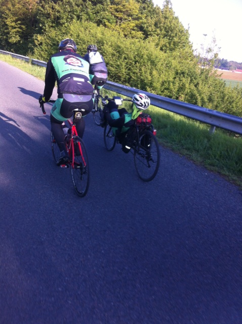 A vive allure (67 km/h pour Miki en descente) Miki,Teddy et J-C partent devant mais prennent la mauvaise direction. Teddy entend la douce voix d'Arnaud qui sonne le rappel. Heureusement qu'il est là notre Saint Bernard ! C'est décidé, nous devons resté groupé.