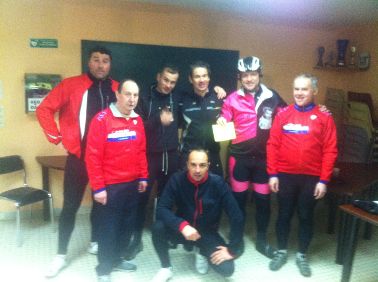 Dimanche 24 Novembre 2013 08 :00AM Première sortie de la team Paul, Arnaud, Teddy,Gabriel et Miki. Miki découvre les bonnes et les mauvaises sensations du vélo de route … Boucle de 65 km à 20km/h de moyenne. De la bonne humeur, des crampes, des douleurs aux fessiers…tout va bien. |