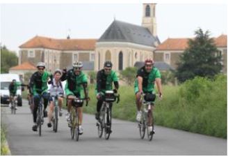 Avant cela on recueille avec délectation les encouragements de Céline et Laëtitia, postées sur le bord de la route, qui nous reviennent toutes bronzées de leur journée de farniente à Royan. Ça nous met la banane, et même pour Gaby une pêche d’enfer, au point qu’il nous bricole une échappée à 3 kms de l’étape, histoire d’arriver en tête devant ce public féminin… Ça sert à rien Gaby, c’est pas le tour de France et nos hôtesses feront la bise à tous, et pas seulement au premier !